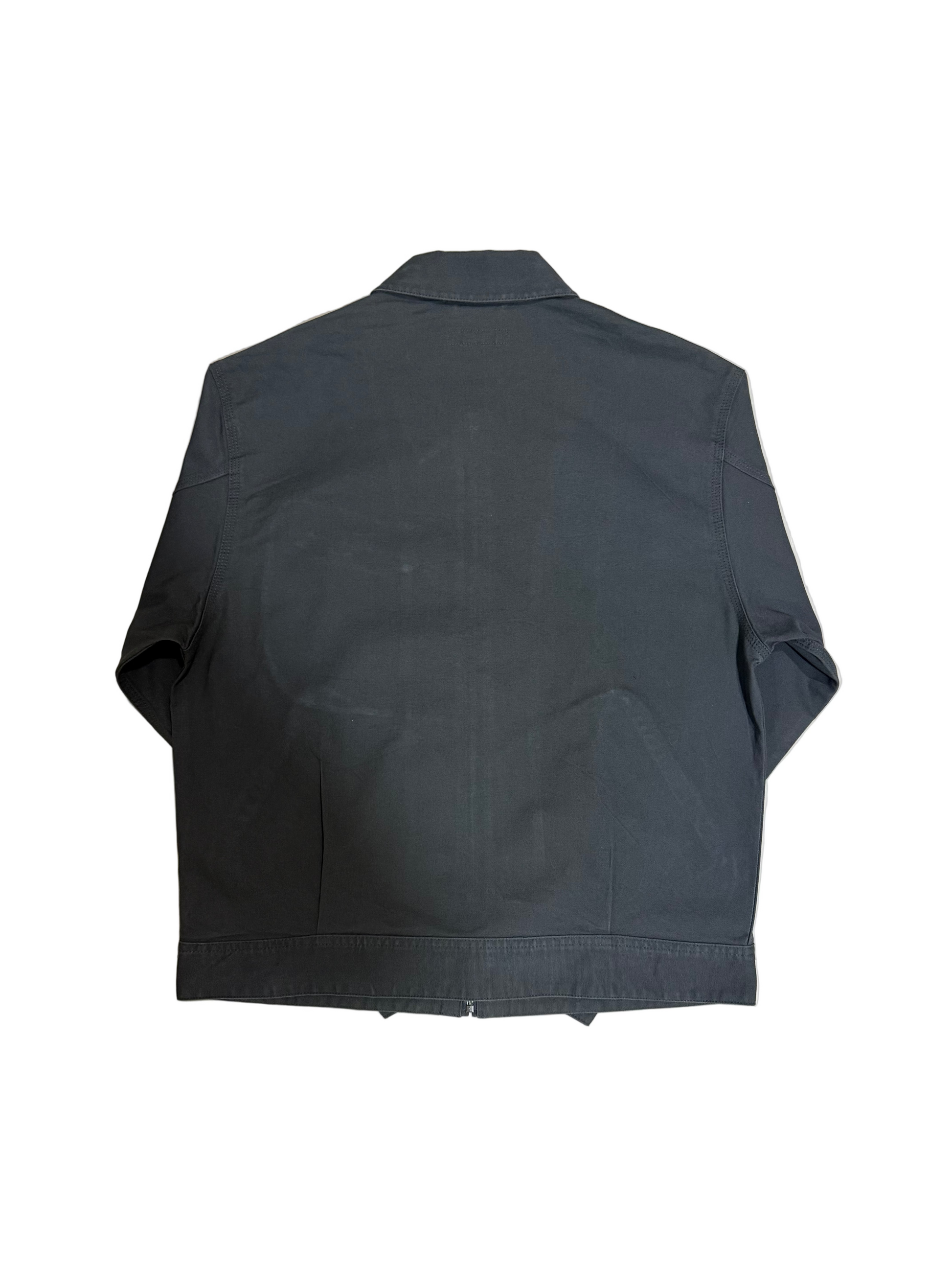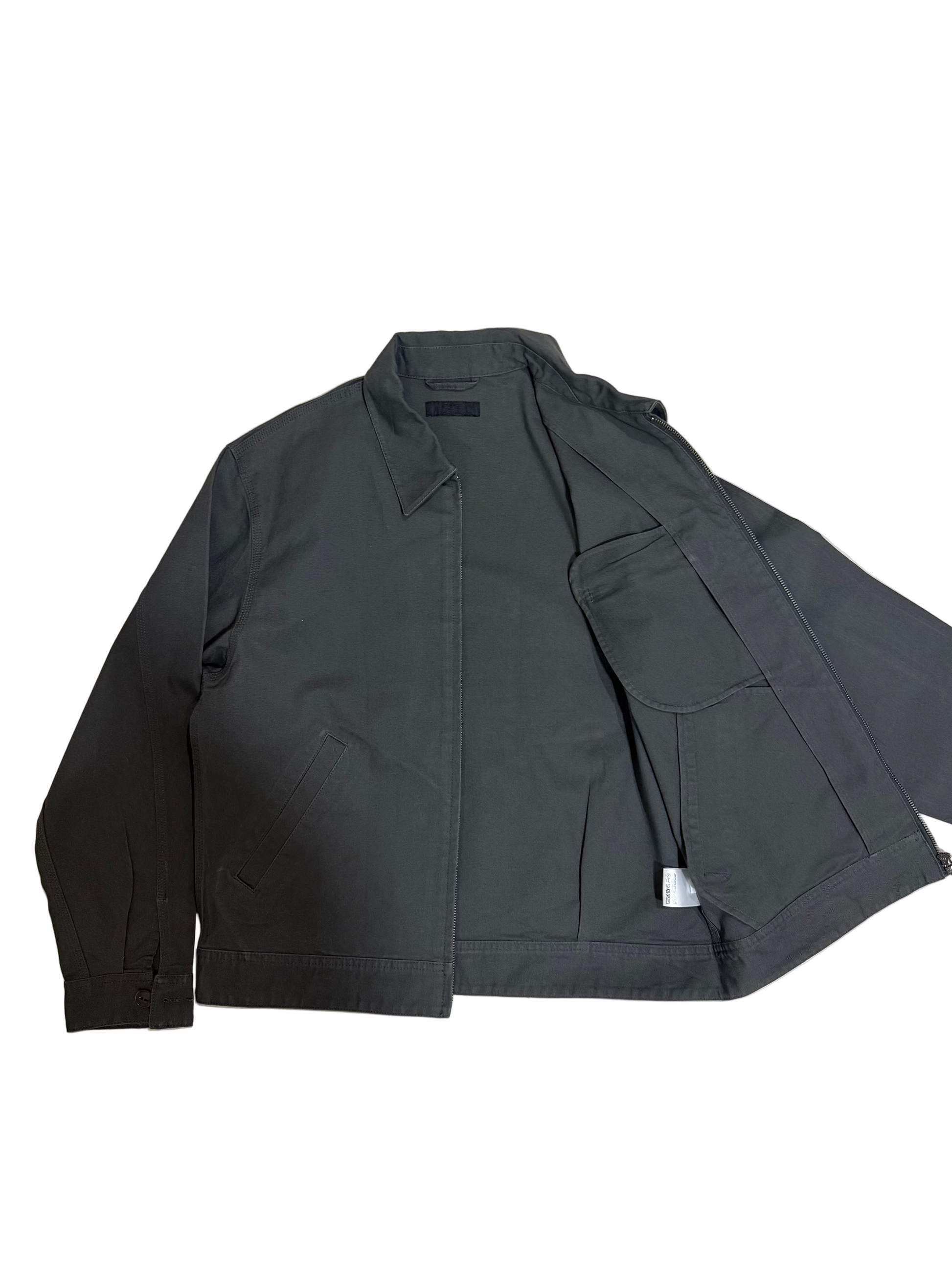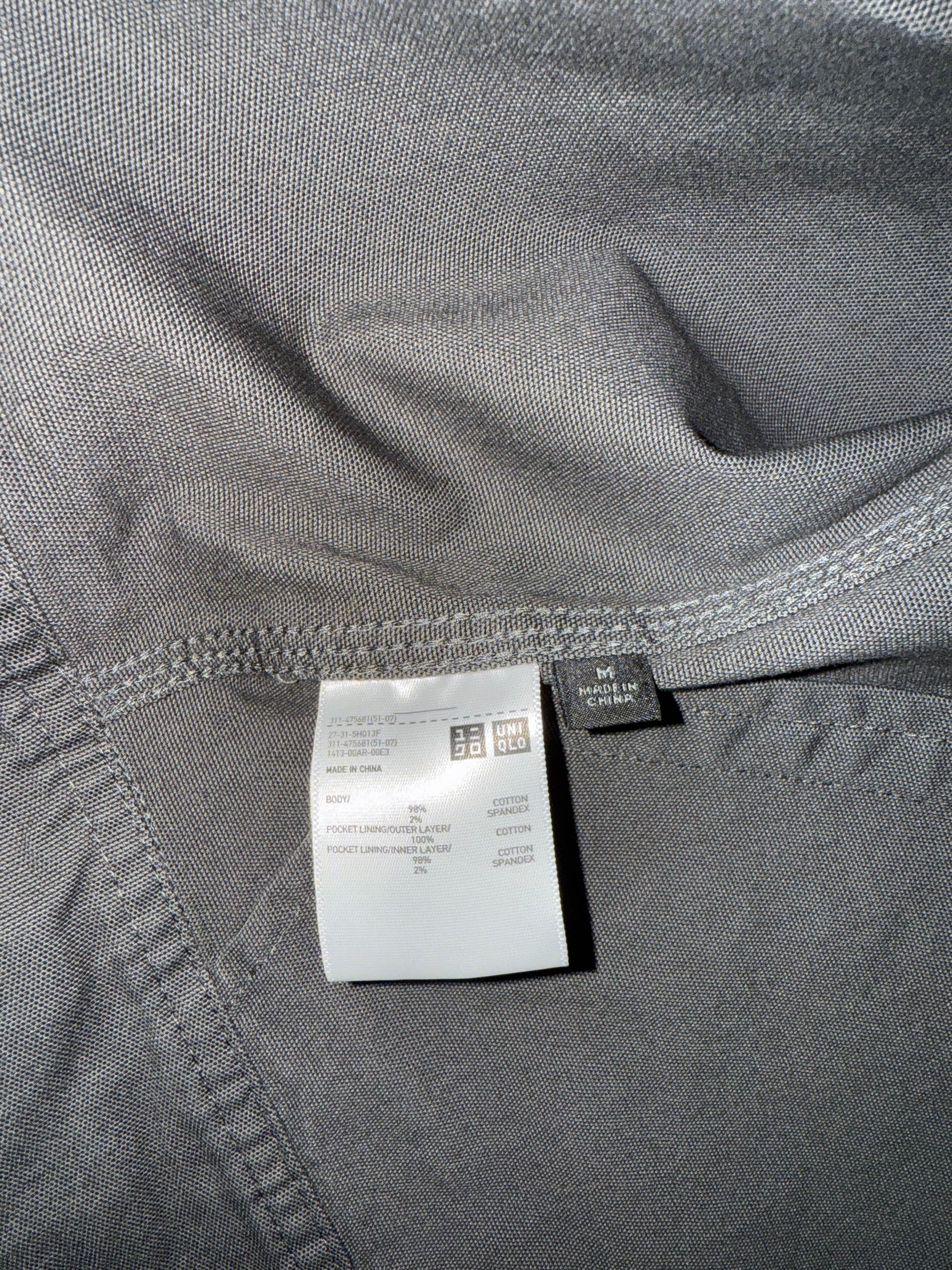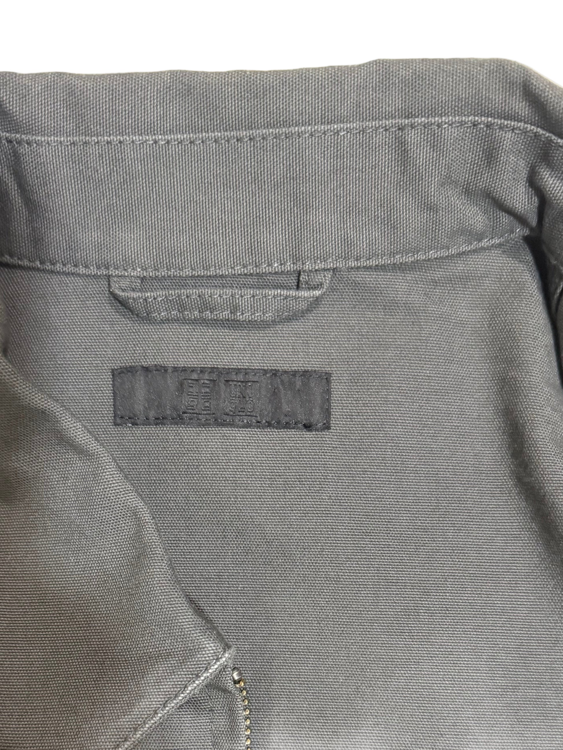 A versatile, workwear inspired jacket from Uniqlo, this dark grey chore jacket blends minimalist design with practical everyday functionality. Crafted from durable cotton twill, it features a structured collar, button front closure, two angled side pockets, and a secure zip chest pocket for added utility.